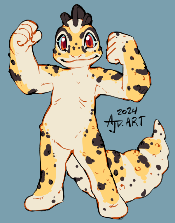 Next up in our fun pokemon design challenge is MACHOP! The very first idea that popped into my head is that... Well.. He's really cute, like a gecko! And I realized machop's have little tails and figured, that's it. We gotta draw it. And I WAS RIGHT, A CUTIE ALERT!