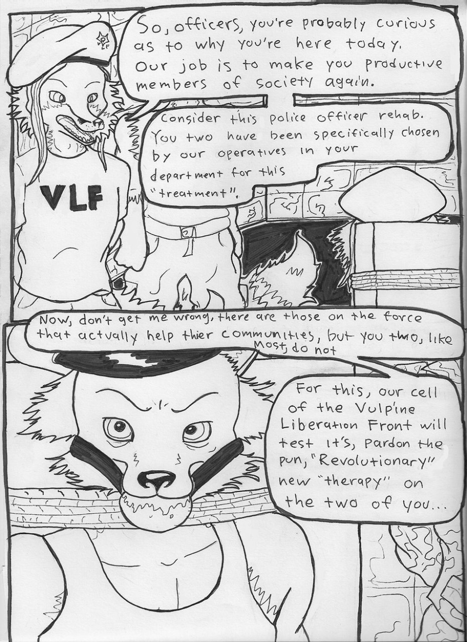 This is a comic I started back in 2010 that has become massive. It's about a group of revolutionary red foxes, the Vulpine Liberation Front (VLF), and their plot to trap a couple of problem cops into a forceful, sex-and-drugs based "social rehabilitation" program run by the group.