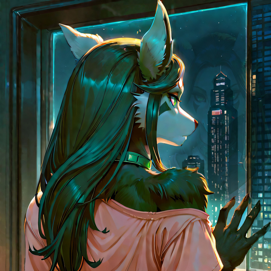 masterpiece, best quality <lora:(1) Furtastic Detailer:1> <lora:(1) Elixir:1> (laying on back:1.4) (laying on bed:1.4) (:1.4) (uncertain:1.4) (from above:1.4) (upside down:1.4), <lora:(S) Anime Screencap Style LoRA:1> (green tank top, jeans:1.4) BREAK <lash> A (mightyena:1.3) (female:1.2) with (black furry forearms:1.3) and a (black diamond fur outline on forehead:1.3). She has (long black hair:1.3), (gray fur:1.2), (green eyes with black pupils:1.2), and wears a (green collar:1.3). (digitigrade:1.2) legs, and (white belly:1.4), (clothes:2) Negative prompt: bloodshot eyes, arms behind back, hands behind back, blurry, blurry background, bad anatomy, bad hands, three hands, three legs, bad arms, missing legs, missing arms, poorly drawn face, bad face, fused face, cloned face, worst face, three crus, extra crus, fused crus, worst feet, three feet, fused feet, fused thigh, three thigh, fused thigh, extra thigh, worst thigh, missing fingers, extra fingers, ugly fingers, long fingers, horn, realistic photo, extra eyes, huge eyes, 2girl, amputation, disconnected limbs, worst quality, normal quality, low quality, low res, blurry, text, watermark, logo, banner, extra digits, cropped, jpeg artifacts, signature, username, error, sketch ,duplicate, ugly, monochrome, horror, geometry, mutation, disgusting, jpeg artifacts, bad quality, jpg artifacts,badhandv4, easynegative boring_e621_v4, bad quality, worst quality, (nipples, nude, nudity:2) (erect nipples:2) (topless:2) Steps: 35, Sampler: DPM++ 2M SDE Karras, CFG scale: 7, Seed: 3519274006, Size: 768x768, Model hash: 8e2f4f1346, Model: yiffymix_v44, VAE hash: 24e650297c, VAE: furception_vae_1-0.safetensors, Denoising strength: 0.5, Mask blur: 4, CFG Rescale: 0.7, Resharpen: 0.15, Lora hashes: "(1) Furtastic Detailer: 2e94914f676c, (1) Elixir: 25a55715ed60, (S) Anime Screencap Style LoRA: b8cfb98b6c79", Version: v1.6.0 |
