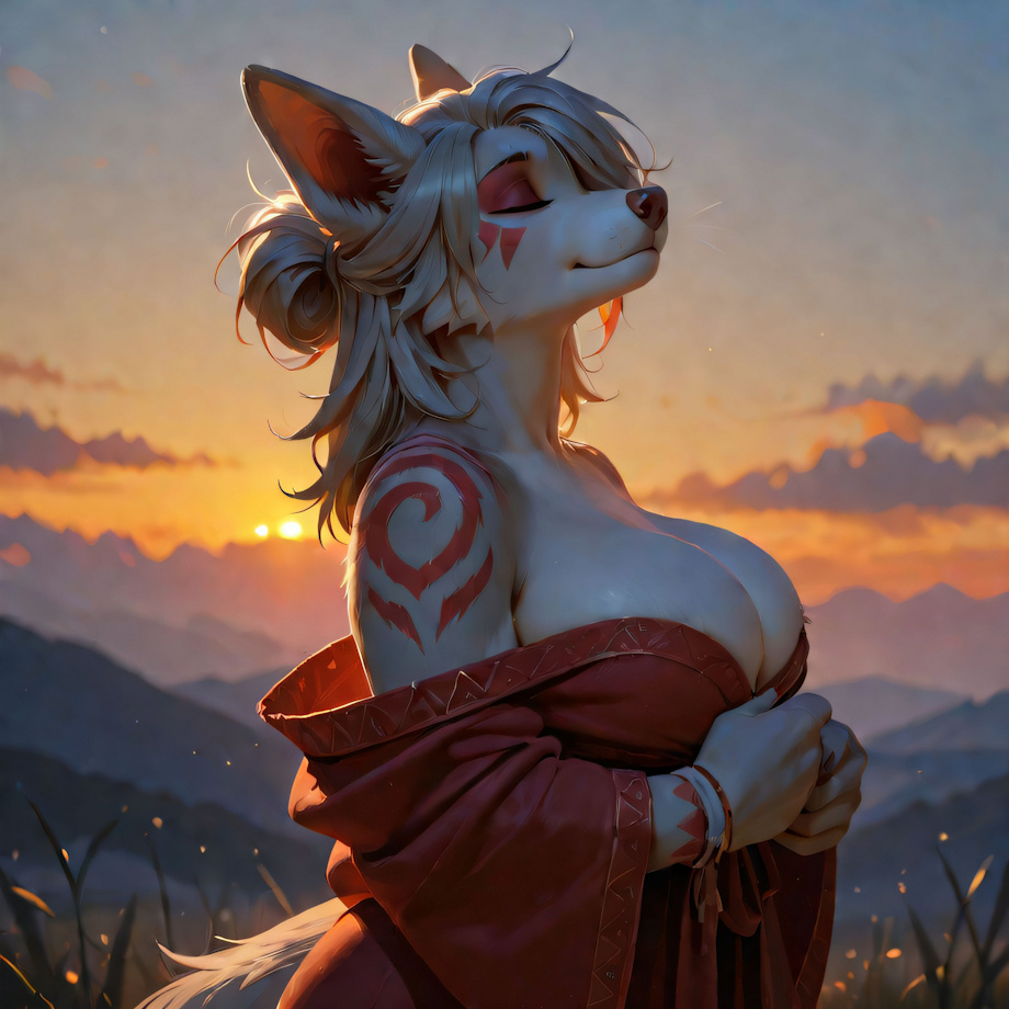 masterpiece, best quality <lora:(1) Furtastic Detailer:1> (water background:1.54) (tribal outfit:1.4) (3 quarter view, seductive;1.4) (closeup:1.4), BREAK <3h4> (female:1.3) A (mightyena:1.4) with (white furry forearms:1.3) and She has (short gray hair:1.3) (updo hair:1.4) (white fur:1.2), and wears a (large breasts:1.3) (red markings:1.5) (tribal markings:1.4) (:1.2) (:1.3), and (black belly:1.4) (hourglass body:1.5) (hair over eye:1.4) (shush finger to mouth:1.4), (clothes:2) Negative prompt: bloodshot eyes, arms behind back, hands behind back, blurry, blurry background, bad anatomy, bad hands, three hands, three legs, bad arms, missing legs, missing arms, poorly drawn face, bad face, fused face, cloned face, worst face, three crus, extra crus, fused crus, worst feet, three feet, fused feet, fused thigh, three thigh, fused thigh, extra thigh, worst thigh, missing fingers, extra fingers, ugly fingers, long fingers, horn, realistic photo, extra eyes, huge eyes, 2girl, amputation, disconnected limbs, worst quality, normal quality, low quality, low res, blurry, text, watermark, logo, banner, extra digits, cropped, jpeg artifacts, signature, username, error, sketch ,duplicate, ugly, monochrome, horror, geometry, mutation, disgusting, jpeg artifacts, bad quality, jpg artifacts,badhandv4, easynegative boring_e621_v4, bad quality, worst quality, (nipples, nude, nudity:2) (erect nipples:2) (topless:2) Steps: 35, Sampler: Euler a, CFG scale: 7, Seed: 1702053843, Size: 768x768, Model hash: 8e2f4f1346, Model: yiffymix_v44, VAE hash: 24e650297c, VAE: furception_vae_1-0.safetensors, Denoising strength: 0.25, Mask blur: 4, CFG Rescale: 0.7, Lora hashes: "(1) Furtastic Detailer: 2e94914f676c", TI hashes: "badhandv4: 5e40d722fc3d, easynegative: c74b4e810b03, boring_e621_v4: f9b806505bc2", Version: v1.6.0 |