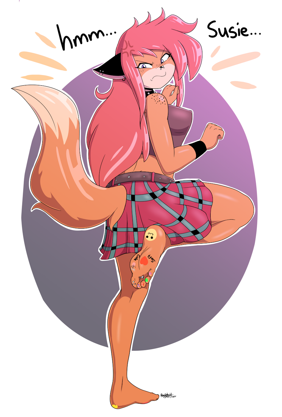 Been a while since I last drew Erin McClain. Seems like Susie snuck some foot art on Erin. I don't think she's happy about it. It does look cute at least ^^