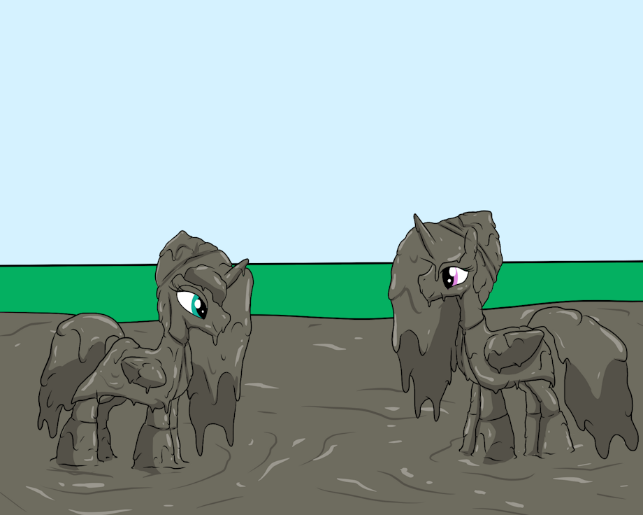 princess celestia and luna in their raincoats in mud muddy