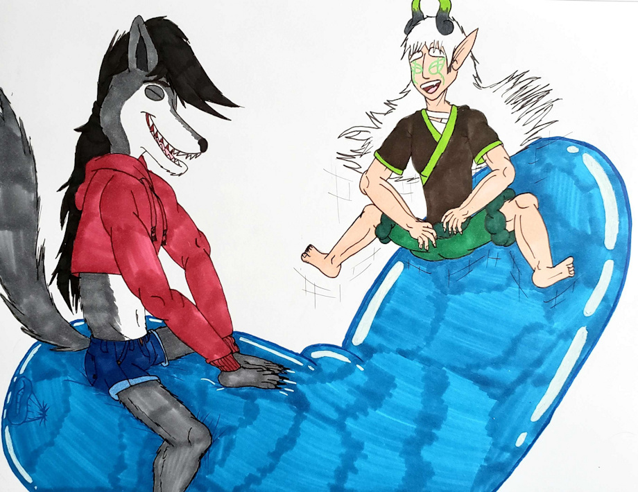 A birthday gift I made for my boyfriend MANIC1265 of our characters bouncing and riding a GL balloon loke a Teeter-totter and having Manic flung up off of it.
