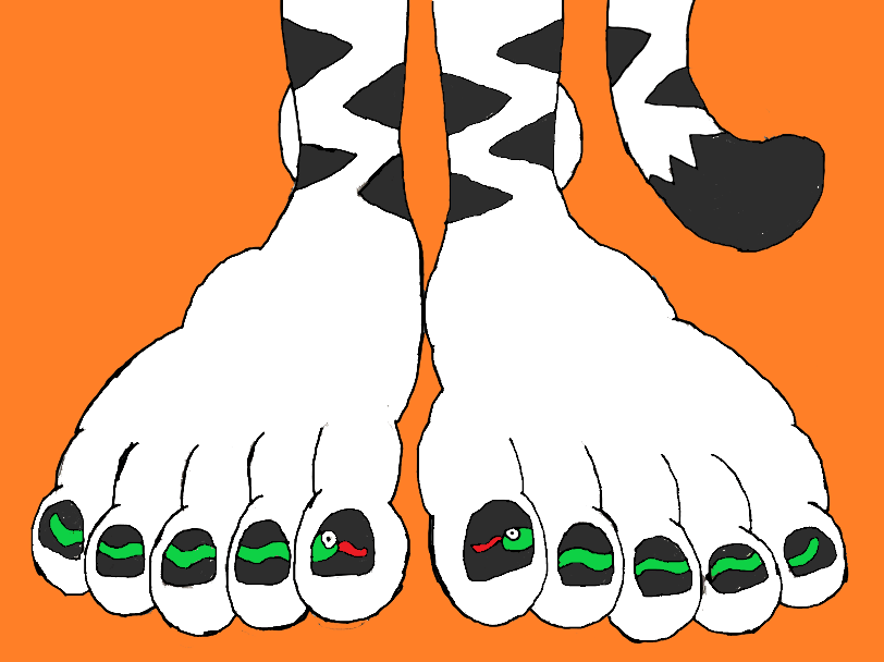 Remember this pic of my Mobian gal Kyrie the White Tigress' feet with a snake design on her toenails?