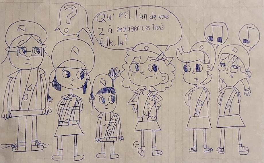 The text of Milly's talking bubble is in French, but you can translate it to Google Translate.