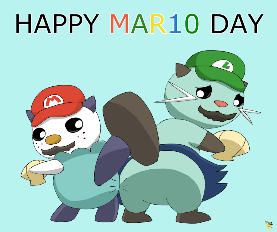 I made something quick for Mar10 day (on 3/10), which also happens to be Oshawott day. Here is something featuring both! It never hurts to combine :3