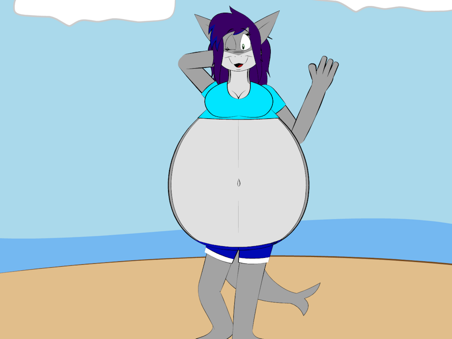 I wanted to give Eclipse a very round potbelly that pokes out of her otherwise thin frame. So I added a little dent under her breasts and on the top of her belly.