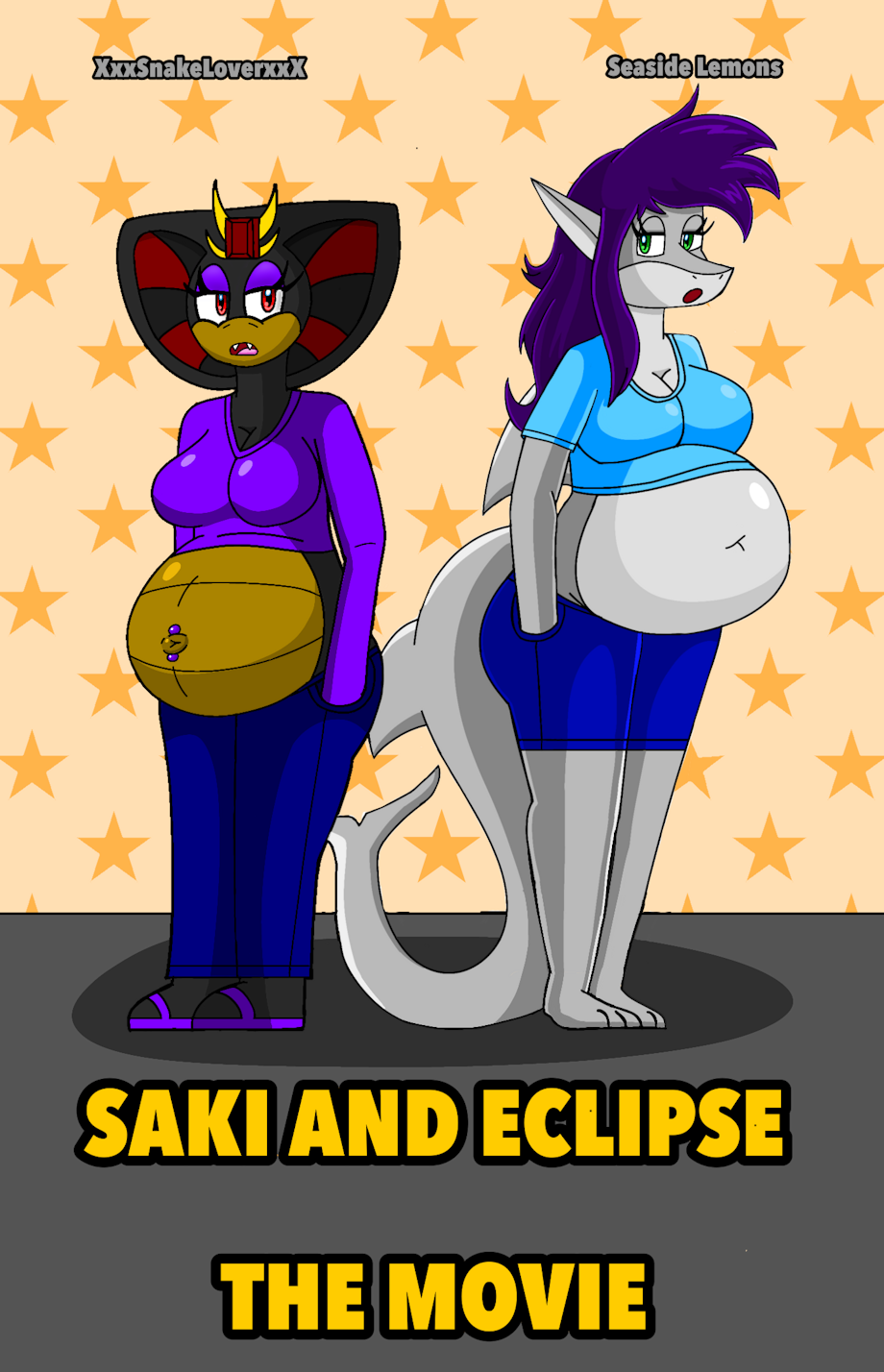 Oh, boy, did this take a while to get done. XxxSnakeLoverxxX asked to me draw his snake girl Eclipse with Saki. I obliged, but I wasn't sure what to do with the scenery. So, I turned the drawing into a mock movie poster.