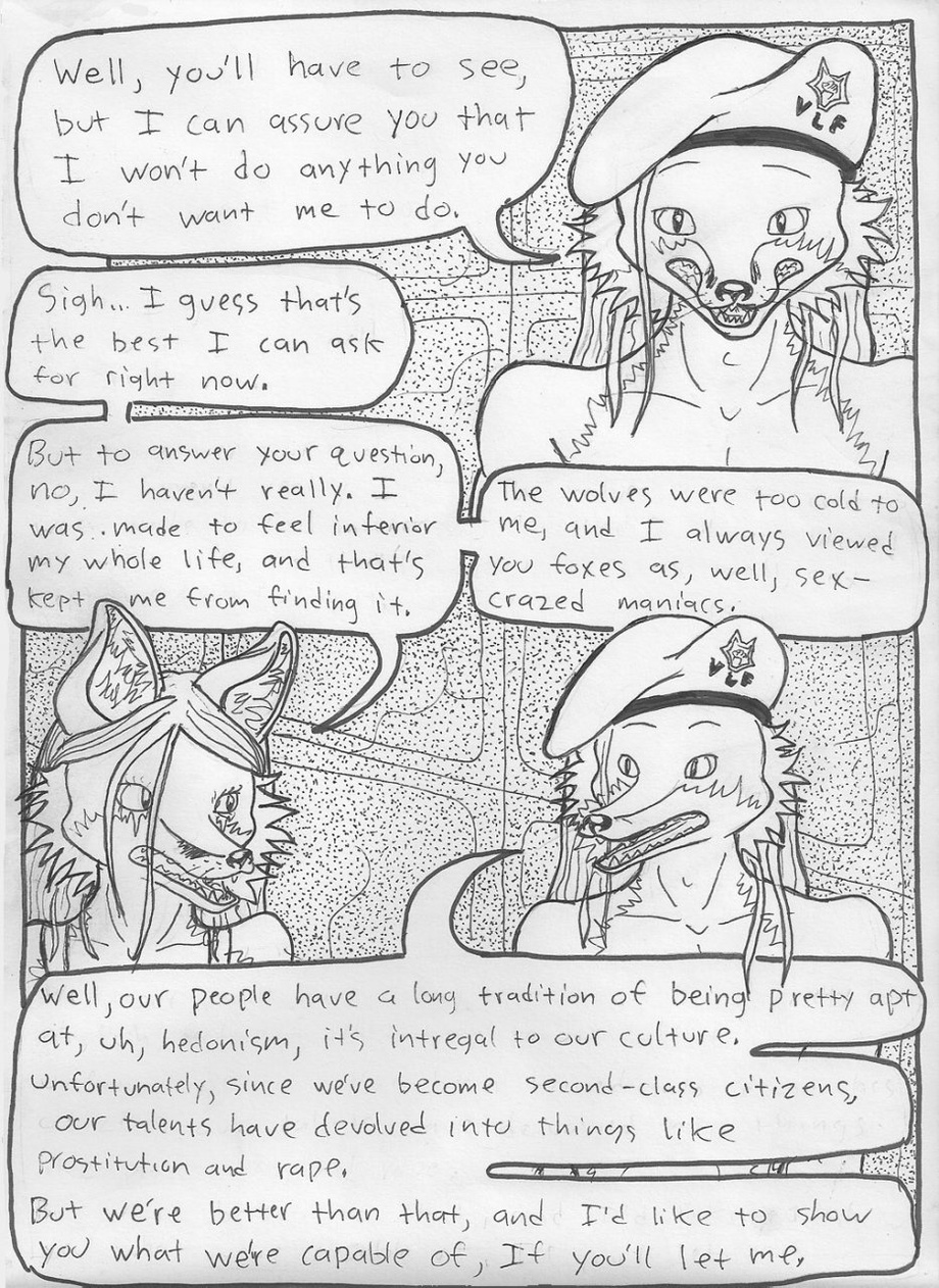 This is a comic I started back in 2010 that has become massive. It's about a group of revolutionary red foxes, the Vulpine Liberation Front (VLF), and their plot to trap a couple of problem cops into a forceful, sex-and-drugs based "social rehabilitation" program run by the group.