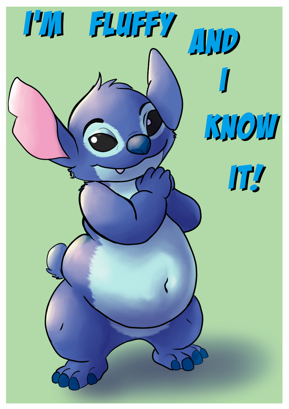 Stitch knows he's adorable and that his new belly just makes him all the more appealing. I bet he'd allow some belly rubs for a coconut cake.