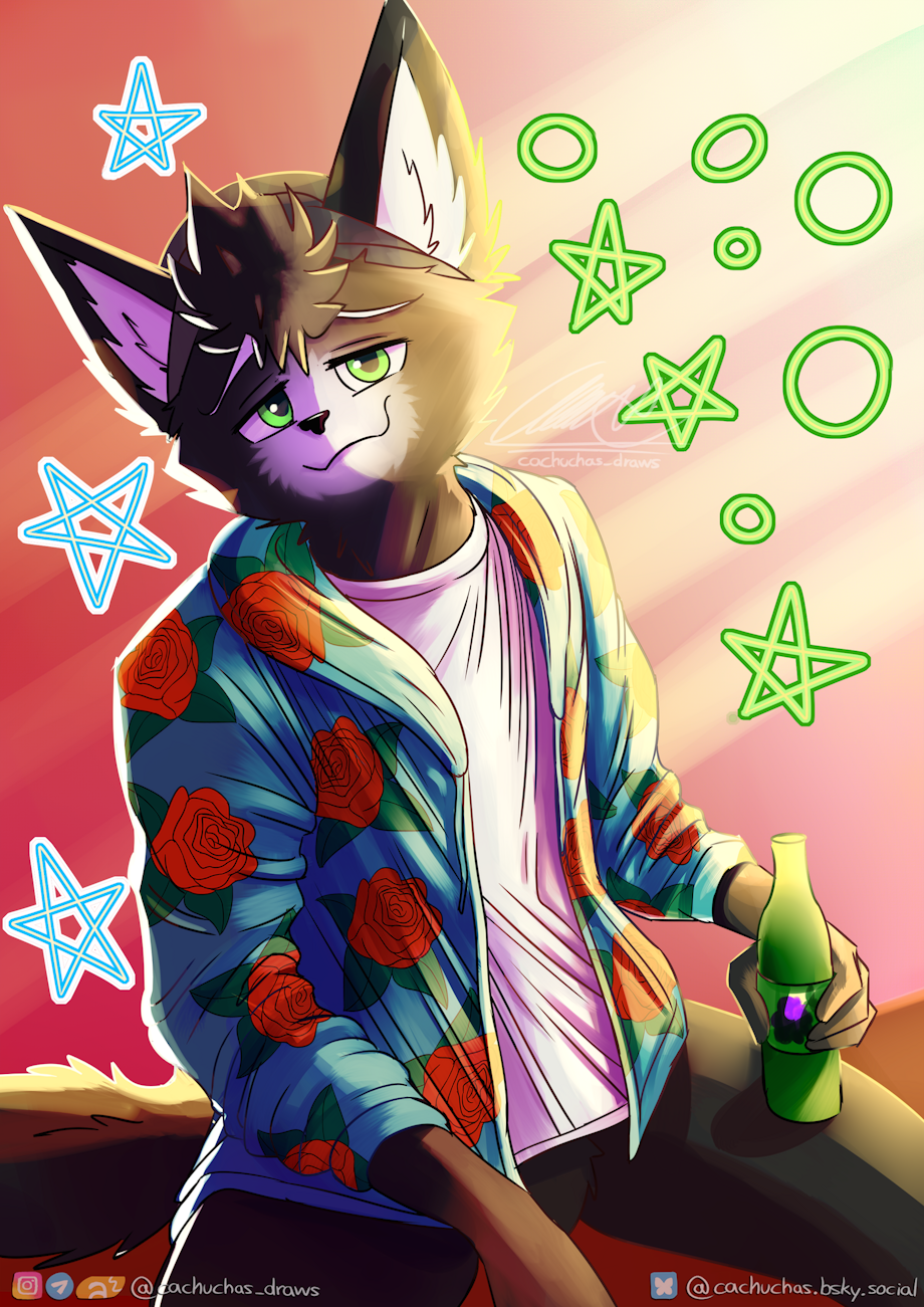 Commission piece for RSKO on discord. Had a lot of fun drawing this one. Slowly learning to draw without having to render a massively detailed background for the shading to work, heheh.
