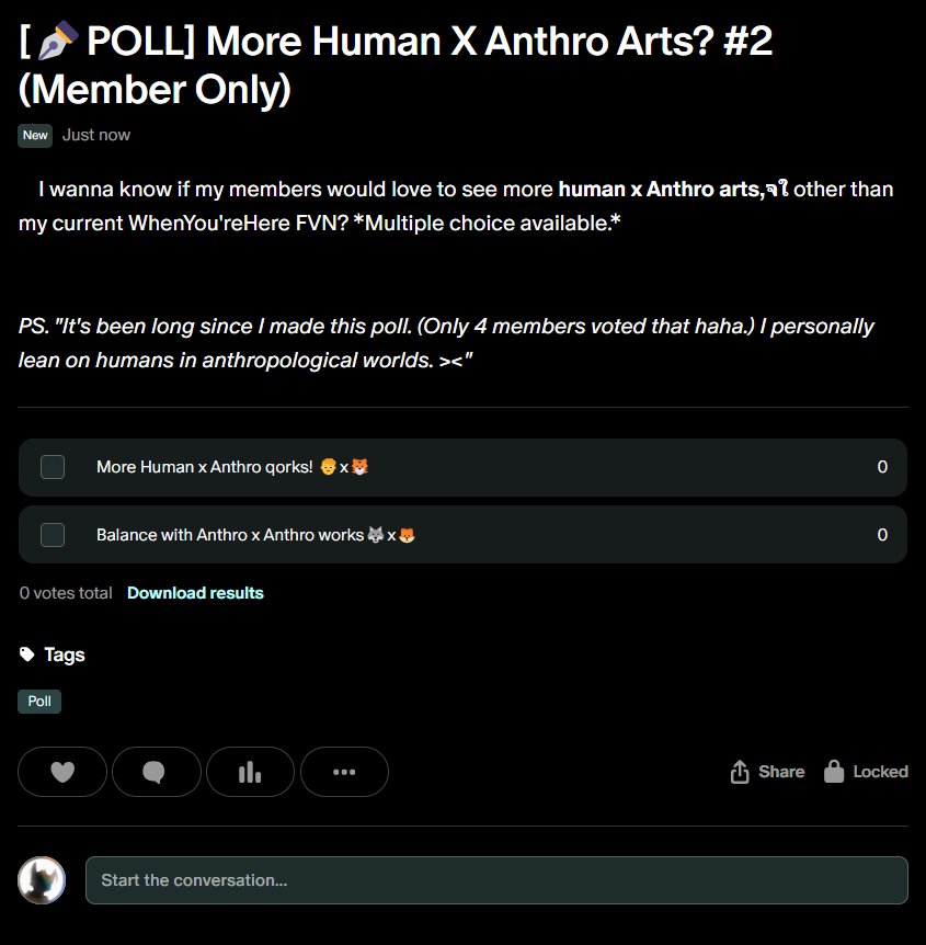 Hi, I made a poll on P@treon and Subscribest@r, my supporter can vote both both choices. ^w^