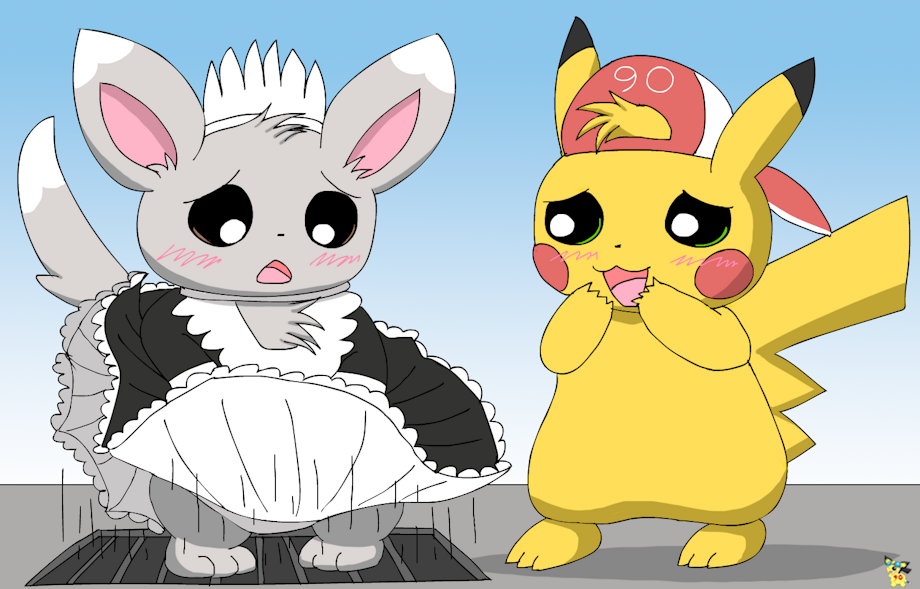 Mincy's maid uniform is being lifted by an air vent, basically doing the Marilyn maneuver which entices Jolts. Both are blushing in this scenario as a result >w<
