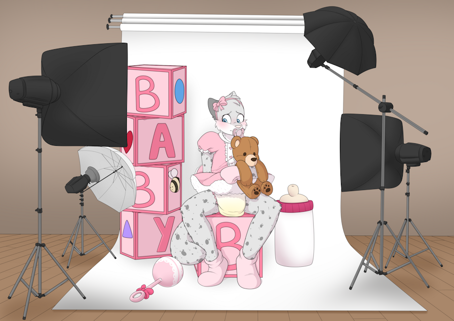Mommy wanted to get some pictures taken of her precious little girl. So she signed them up for a photo shoot by a professional photographer. They even have all these oversized props to really make the pictures pop.