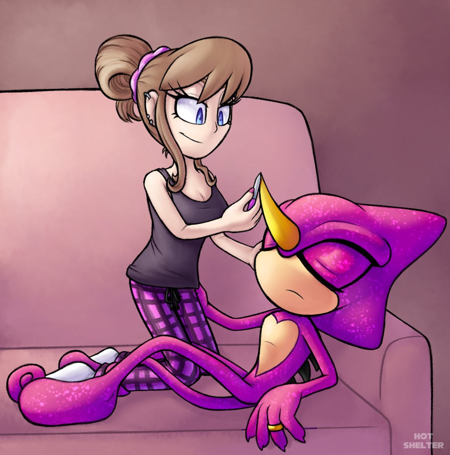 I was asked to draw Espio filing his horn. I inserted myself into it.