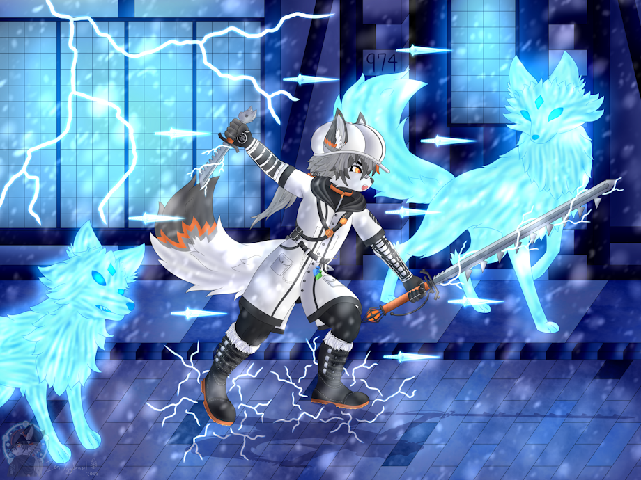 "An illusion" Ion muttered annoyingly as he eyes opened, taking a quick glance to the rooftop above to see a shadowy figure standing there, fully covered in a black cloak, hood, over it's head as to hide the face, "I got you now" Ion bluntly said as he turned his attention back to the spectral beasts, "but first I will have to settle this, as I probably look the same way to them as they do to me." Ion readied a more arcane stance as he eyed the spectral fox that was behind him, "Knowing Zephyr he would be more cautious and see how things play out, Flint on the other hand..." Ion thought as the spectral fox lunged towards him, baring fangs ready to bite in, "I will have to be careful of where his sword might be, as the illusion form is not accurately representing his actual formation" Ion continued thinking as lightning swirled around his hand movements, once the spectral fox was close enough, Ion swung out his mechanical arm, grabbing what looked like thin air as his hand jostled like it was holding back something as the spectral fox looked frozen mid lunge. then with the motion of his other arm, Ion let out his palm as lightning burst out at the spectral fox causing it to bounce back and tumble along the ground, Ion then made a glaring stare at the other spectral fox who still seamed keenly interested in the interaction he had with the other before giving a quick nod upwards with his eye quickly glancing at the shadowy figure up on the rooftops before locking back with the other spectral fox as it turned it's head back towards those rooftops before eyeing back at Ion and giving a nod of it's own. "So you understand, now if I can just get him to do the same" Ion thought as he turned his attention once more to the spectral fox he fought off, as it got back to it's feet, readying to attack again though this time it look more in deep thought, "good, he might be getting it, but I think I will have to push him a bit more" Ion continued thinking as he made another quick hand motion, launching lightning back at that spectral fox who seamed more surprised by Ion's attack, though as it went to engage, Ion's lightning suddenly curved backwards, launching straight back at the rooftops, directly towards where the shadowy figure was as it jumped back, the spectral fox, watched the lightning's movements closely and then eyed onto that shadowy as it made it's dodge, "good, I think you finally get it" Ion muttered as he turned around, the shadowy figure now stood in the street before them as Ion drew his sword and dagger.