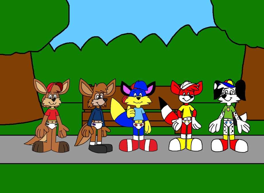 There are All wearing a Caps, Shirts, Diapers, Socks and Shoes with Belly Buttons.