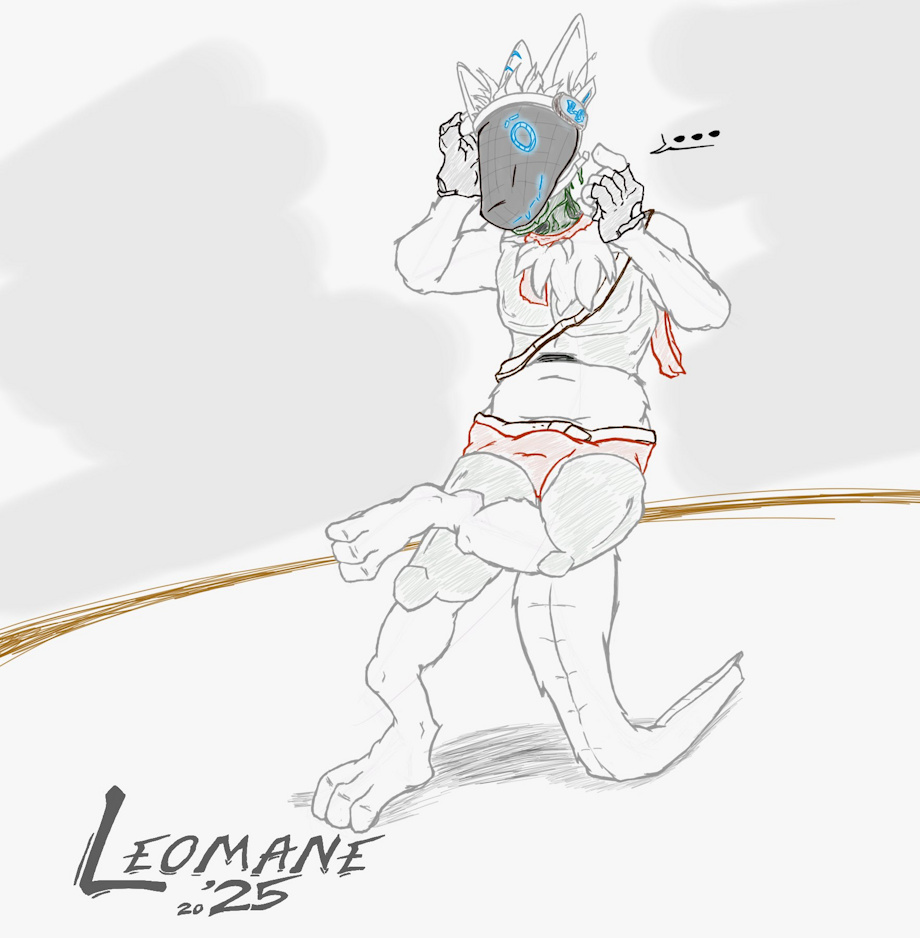 Seems you've caught Vic-Trolla the protogen at an opportune relaxing time he's more than happy to chill a bit with you, and seems Vic-Trolla wants to get a little more comfy by removing his HEAD?! wait is there someone IN it is... this actually a protogen fursuit? A lot of things really don't add up all of a sudden especially that balance and use of the tail and dark green semi fluid smirk inside the head hole...
