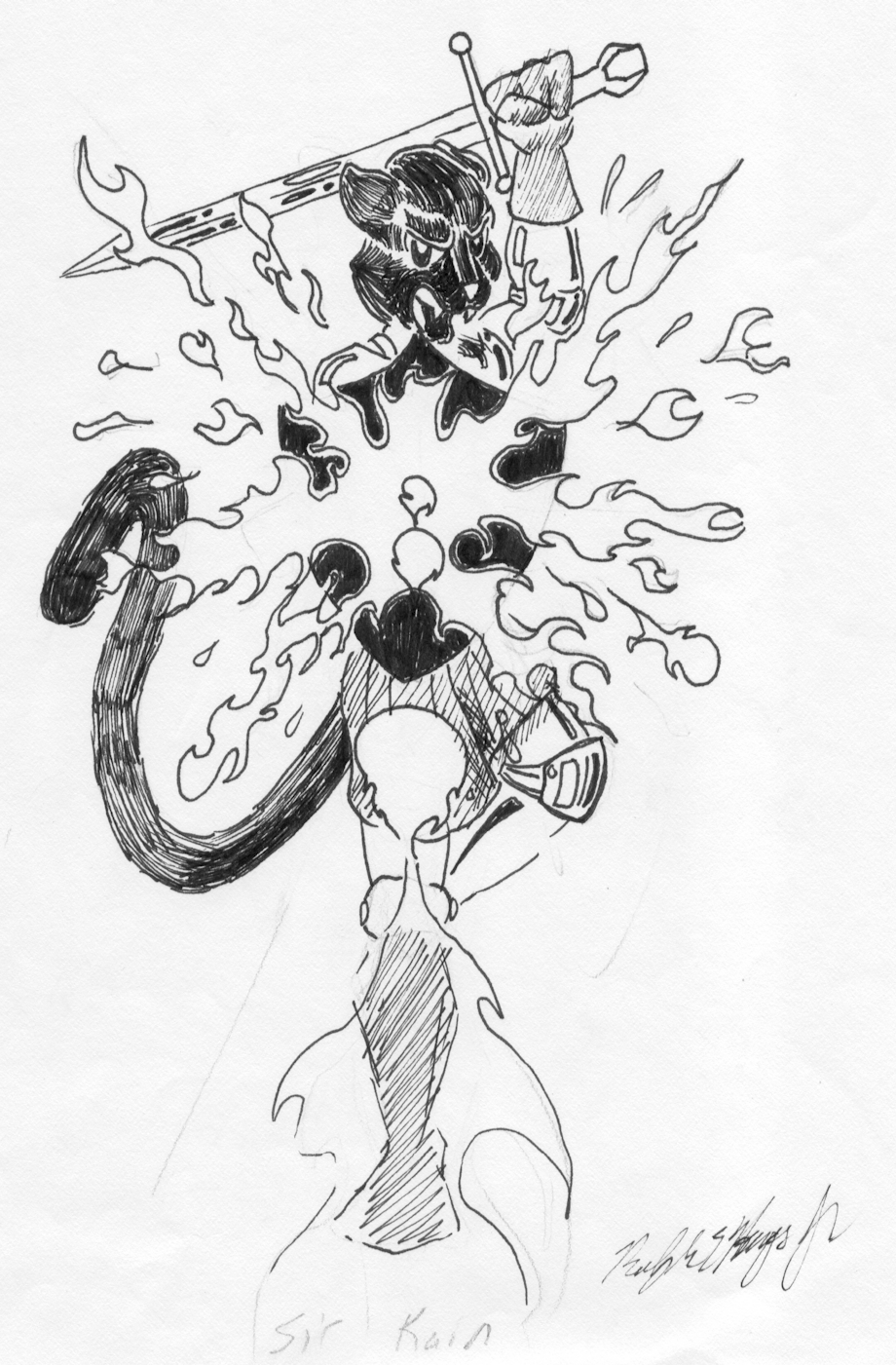 Sir Kain fighting someone, or something that can breathe fire. All done traditionally!