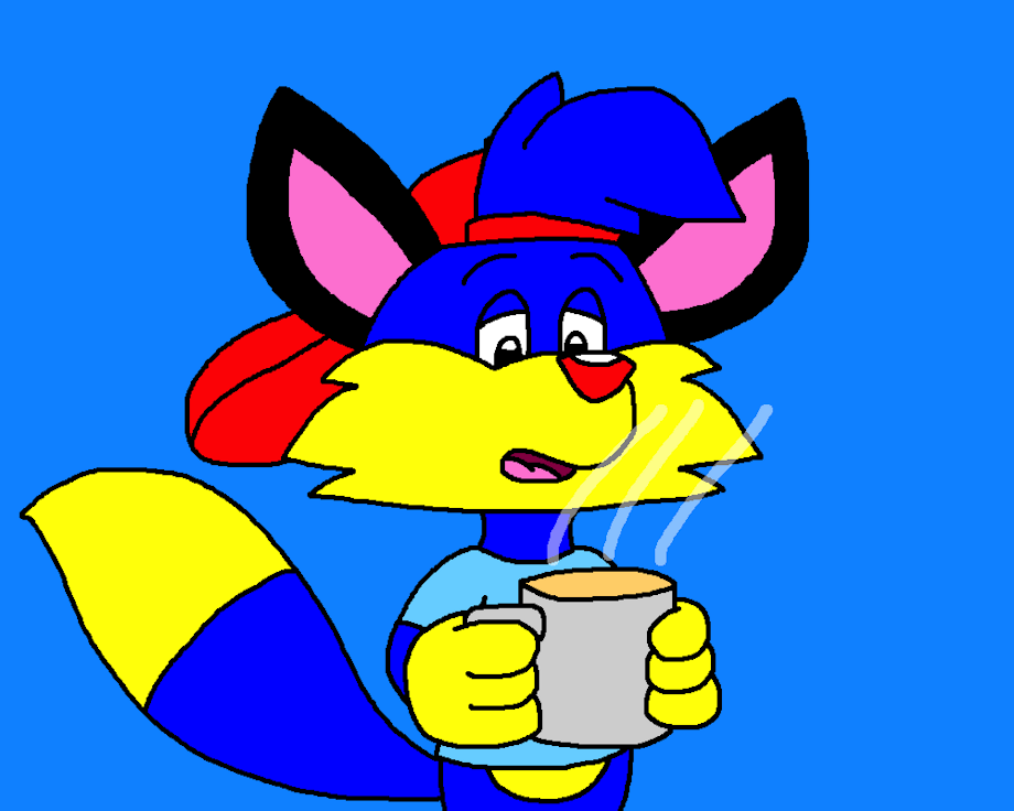 Alex the Fox with a Cold Red Nose and Having a Cup of Tea and So Begin a Sip in the Kitchen.