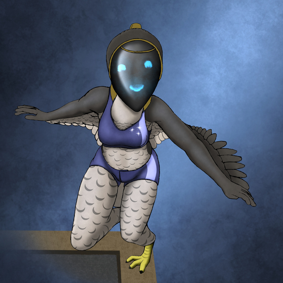 I've been thinking about an off-brand protogen species for a while, and well, birds and cyborgs were one of the things that really appealed to me. so here: a dronified avian species, this time based on a peregrine falcon. I'll do some more with this at some point.