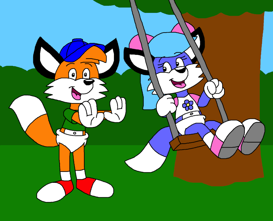 Billy the Fox Pushing Bluebell the Fox on a Swing