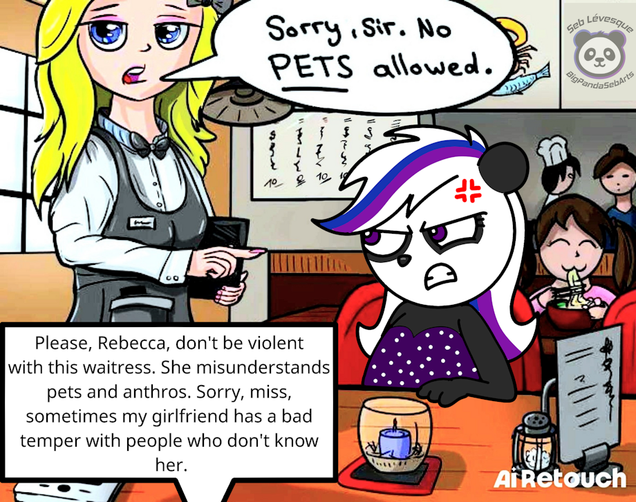 In real life, if I bring my pet in a chic restaurant and the waitress ask "no pets allow", I'll just order inside as a takeout and eat sitting on a bench with my pet.