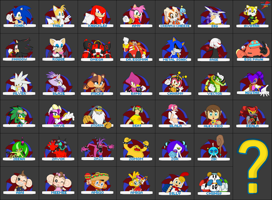and that's my entire Sonic Racing Crossworlds roster concept complete a few honorable mentions has to go to: B.D. Joe (Crazy Taxi) (who almost made my roster) the Prime Characters (which I hope are costumes rather than taking their own spot on the roster)