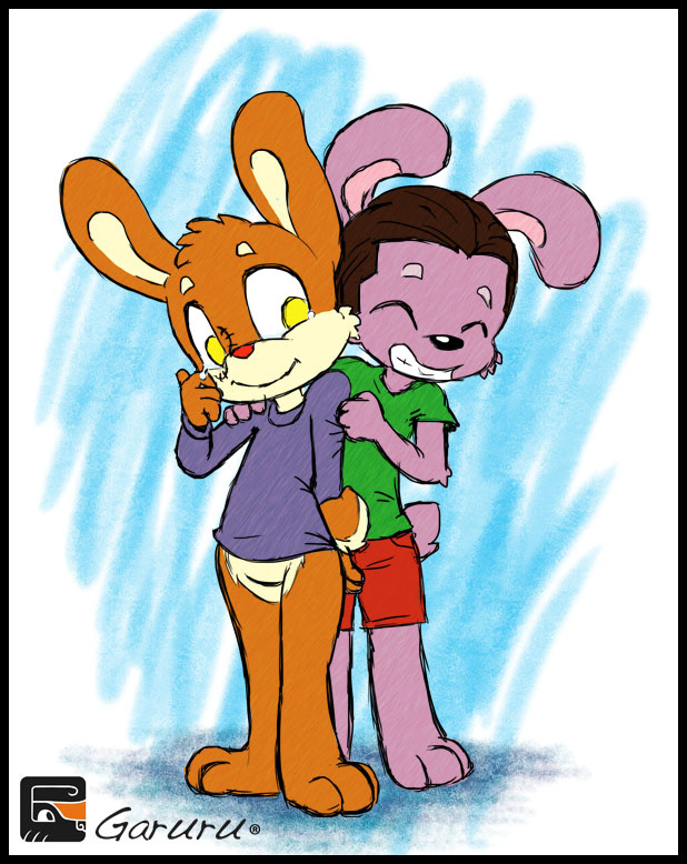 Hehe, looks like there's a paw on Garu's crotch! Crotch pawing tends to cheer me up too! ^w^