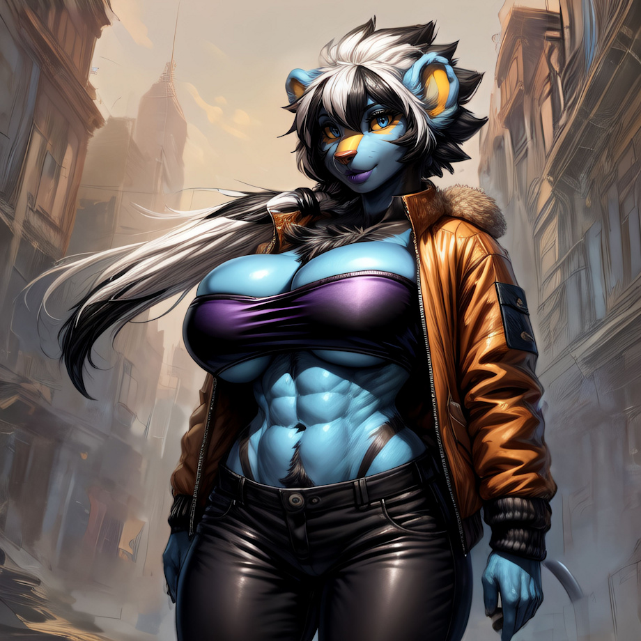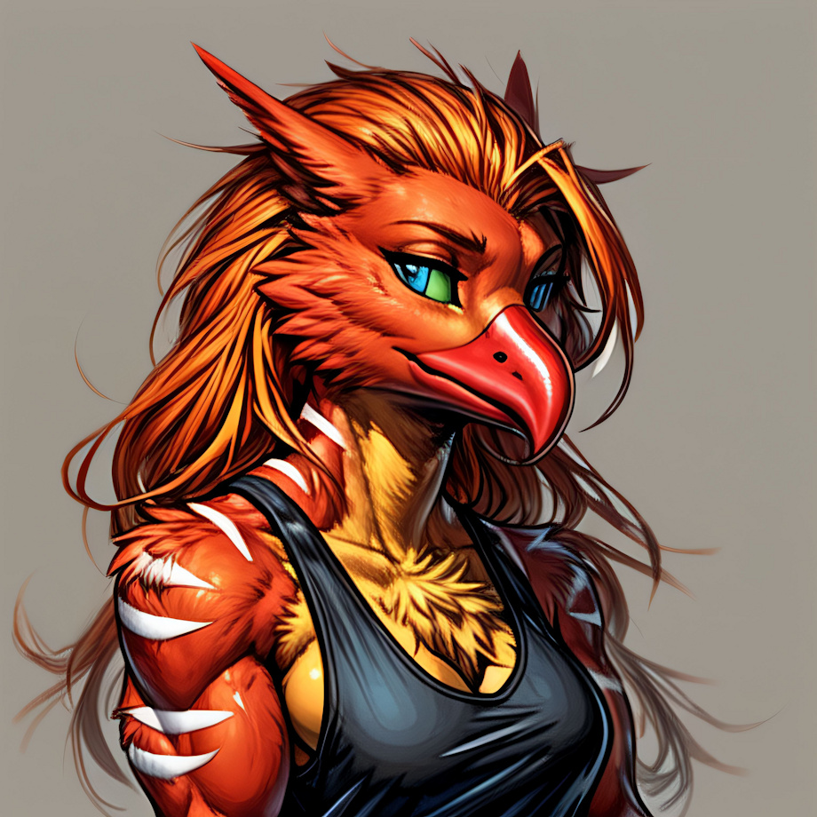masterpiece, best quality <lora:(1) Furtastic Detailer:1> (white vest:1.4) (black tshirt:1.4) (jean shorts:1.4) BREAK a (female:1.4) <lora:Blaziken:0.5> Blaziken (red feathers:1.4) (black forearms, scuted arms:1.4) (long hair, orange hair:1.4) (yellow chest tuft:1.4) (blue eyes, green sclera:1.4) (small beak, red beak:1.4) (medium breasts:1.4) (athletic:1.4) (scuted legs:1.5) (white stripes:1.8) (blue highlights:1.4) (thick thighs:1.4) (claws:1.3) <lora:CharacterDesign_Concept:0.6> (CharacterSheet:1), (multiple views, full body, upper body, reference sheet:1) tail:0 Negative prompt: bloodshot eyes, arms behind back, hands behind back, blurry, blurry background, bad anatomy, bad hands, three hands, three legs, bad arms, missing legs, missing arms, poorly drawn face, bad face, fused face, cloned face, worst face, three crus, extra crus, fused crus, worst feet, three feet, fused feet, fused thigh, three thigh, fused thigh, extra thigh, worst thigh, missing fingers, extra fingers, ugly fingers, long fingers, horn, realistic photo, extra eyes, huge eyes, 2girl, amputation, disconnected limbs, worst quality, normal quality, low quality, low res, blurry, text, watermark, logo, banner, extra digits, cropped, jpeg artifacts, signature, username, error, sketch ,duplicate, ugly, monochrome, horror, geometry, mutation, disgusting, jpeg artifacts, bad quality, jpg artifacts,badhandv4, easynegative boring_e621_v4, (nipples, nude, nudity:2) (erect nipples:2) (topless:2) Steps: 35, Sampler: Euler a, CFG scale: 7, Seed: 38615197, Size: 768x1152, Model hash: 8e2f4f1346, Model: yiffymix_v44, VAE hash: 24e650297c, VAE: furception_vae_1-0.safetensors, Denoising strength: 0.59, Mask blur: 4, CFG Rescale: 0.7, Lora hashes: "(1) Furtastic Detailer: 2e94914f676c, Blaziken: f528e8992617, CharacterDesign_Concept: 6f65857a23ad", Version: v1.6.0 postprocessing Postprocess upscale by: 4, Postprocess upscaler: 4xUltrasharp_4xUltrasharpV10.pth extras Postprocess upscale by: 4, Postprocess upscaler: 4xUltrasharp_4xUltrasharpV10.pth |