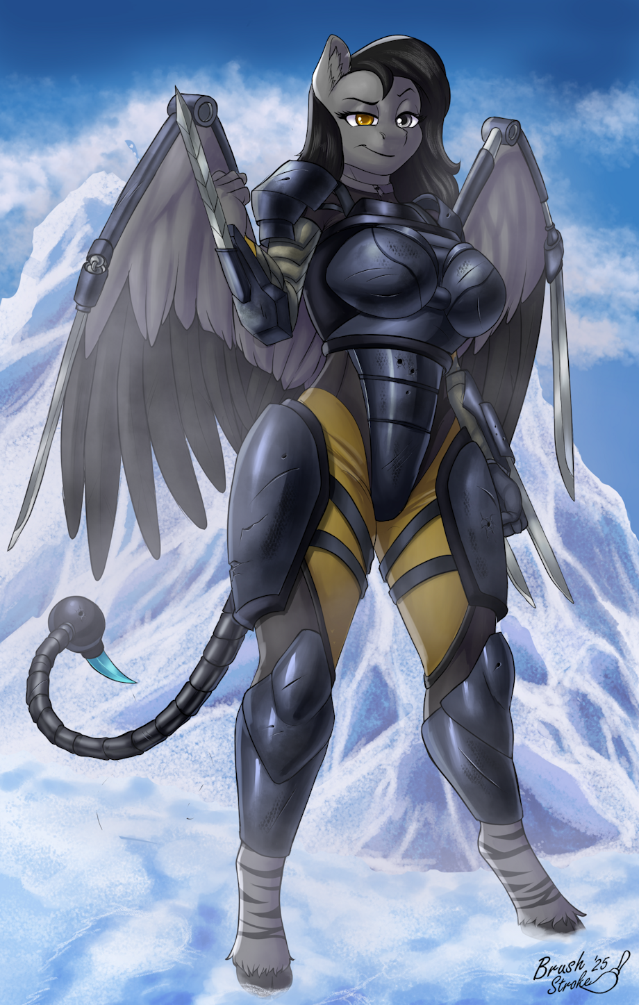 Commission piece for Death Light Productions of their Fallout Equestria OC, Night Song. This time she's geared up in her melee spec armor.