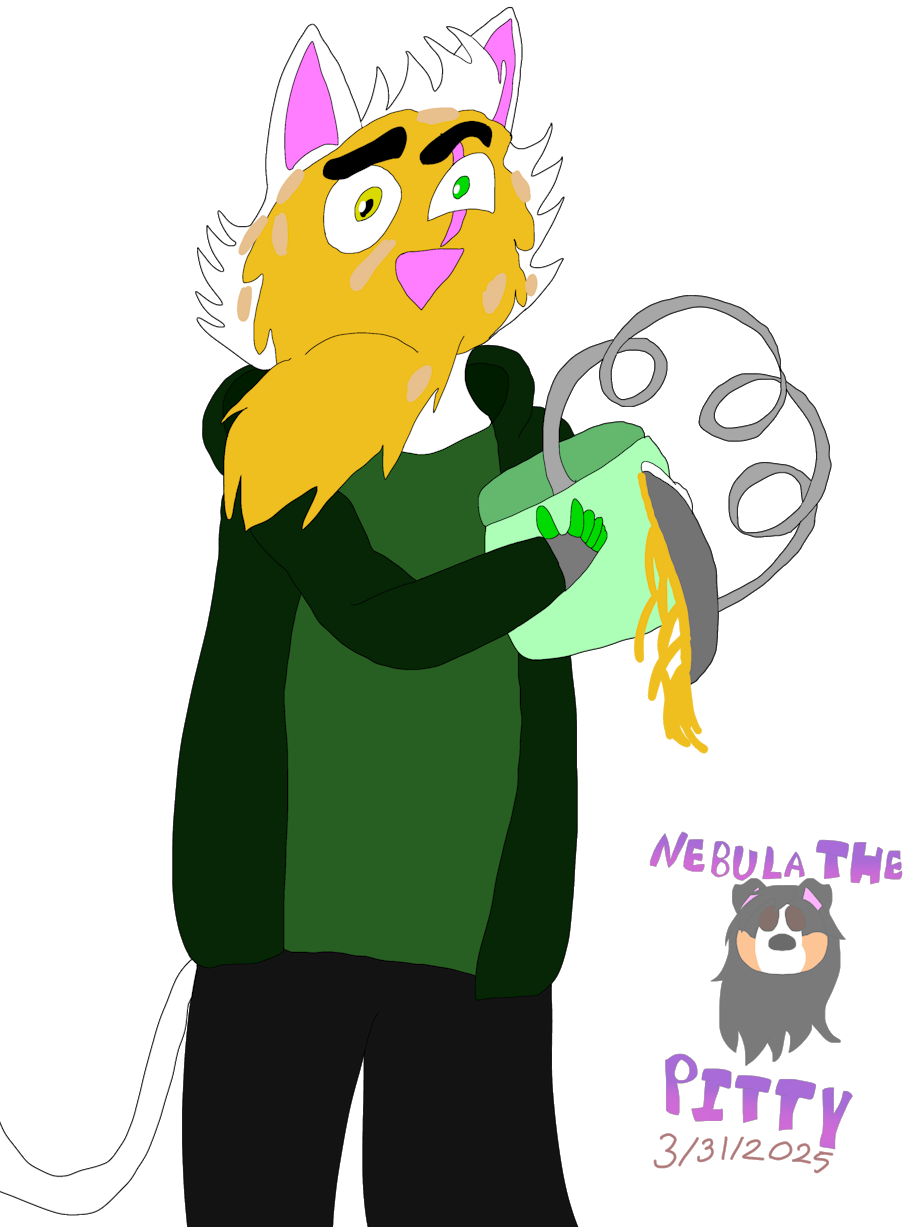 This year’s April Fools drawing is Genderbend version of Scratch getting pranked by his enemies Andrew and Prince (Genderbend version of Princess) by giving him a present, turns out it was a pie and got thrown in Scratch’s face by a slink.