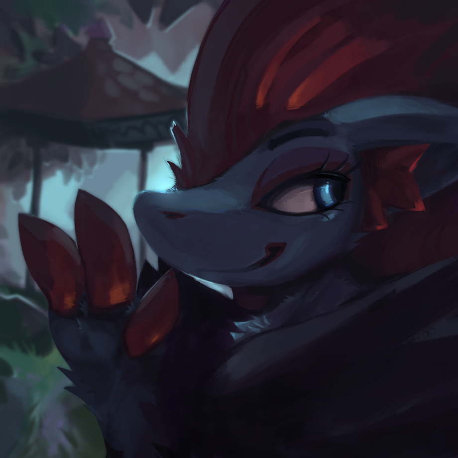 Some more painty experimentation - this time focussed on texture stuff, though trying to keep it subtle. Surprisingly professional-looking, in my opinion, even if it's somewhat on the dark side! I especially like how the red stuff came out, hehe. Also, I should probably come up with a new 'standard zoroark angle' - I feel like I've drawn this exact face at least a dozen times already. Something to keep in mind!