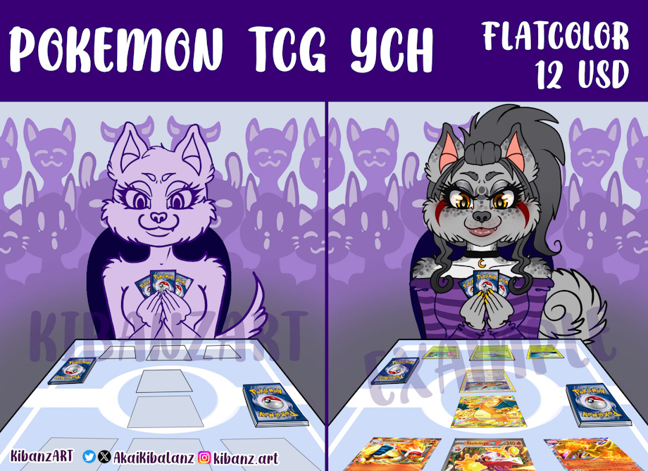 Hello everyone!! Who plays Pokémon TCG? I'm bringing you this cute YCH. I'd be so happy to draw lots of characters playing with their favorite cards!