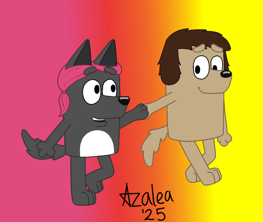 So, my 5 year old headmate Azi wanted me to draw her and our eight year old headmate Sammy in the style of the hit children's show Bluey. So, I obliged, and drew them in the style of the show.