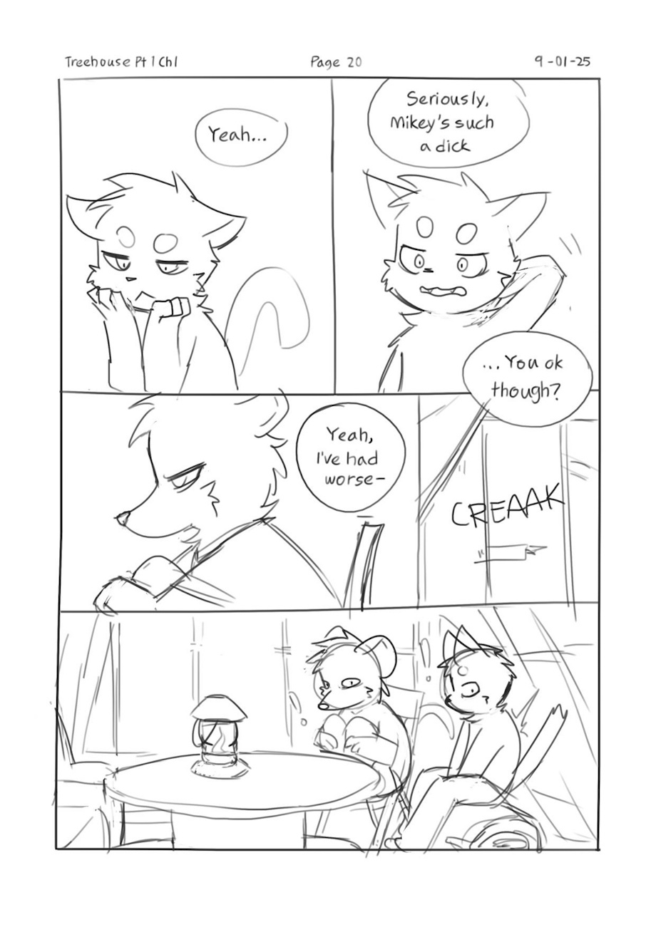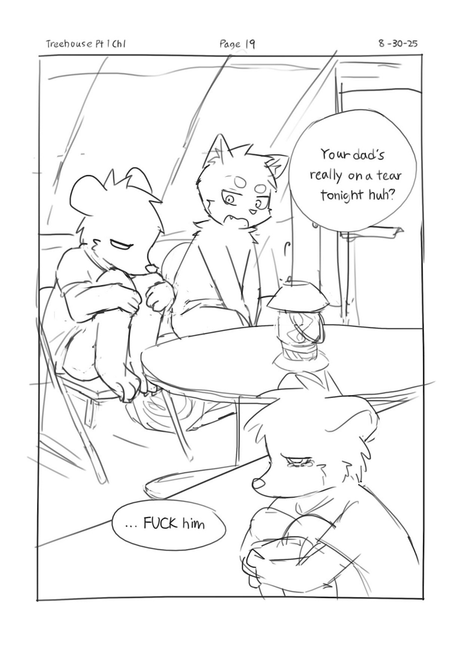 Edit; gosh these panels are such a great intro. You capture the vibes so well! I'm sure this story is a daunting project though given the story's length. If you ever want to talk shop on storyboarding and ways to condense and strip the exposition down let me know. I adore and trust your vision already though. :o)