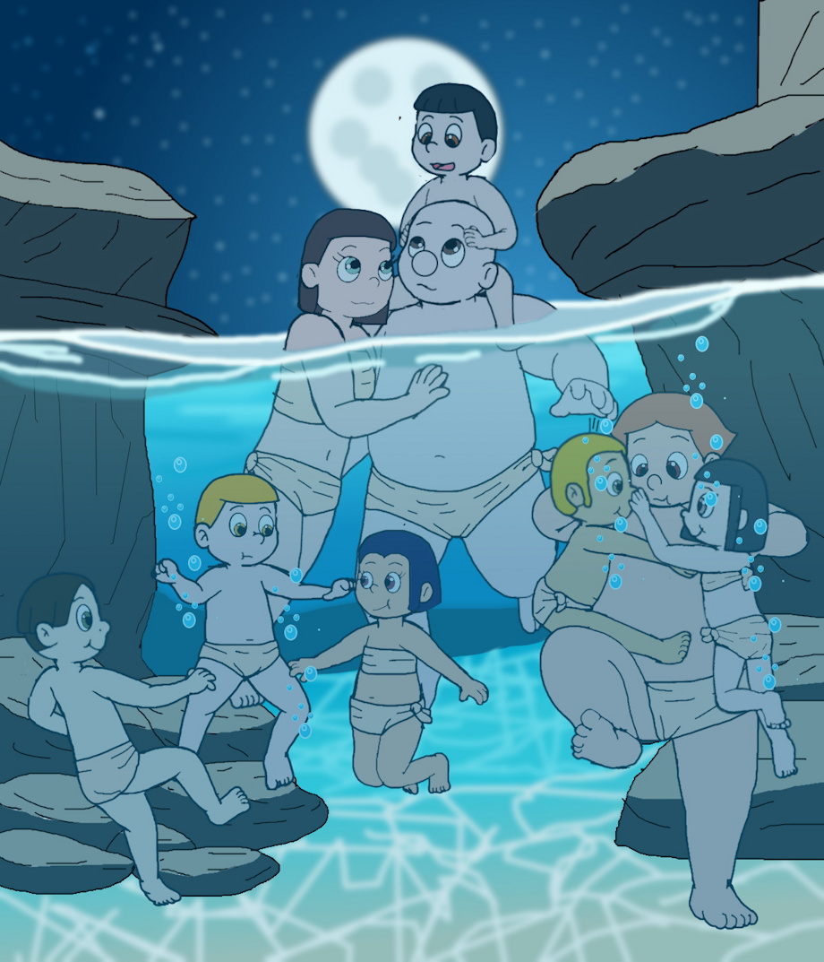 on the island of hula, it is customary to swim at night. The guys really liked it. The moon and stars illuminate the water.