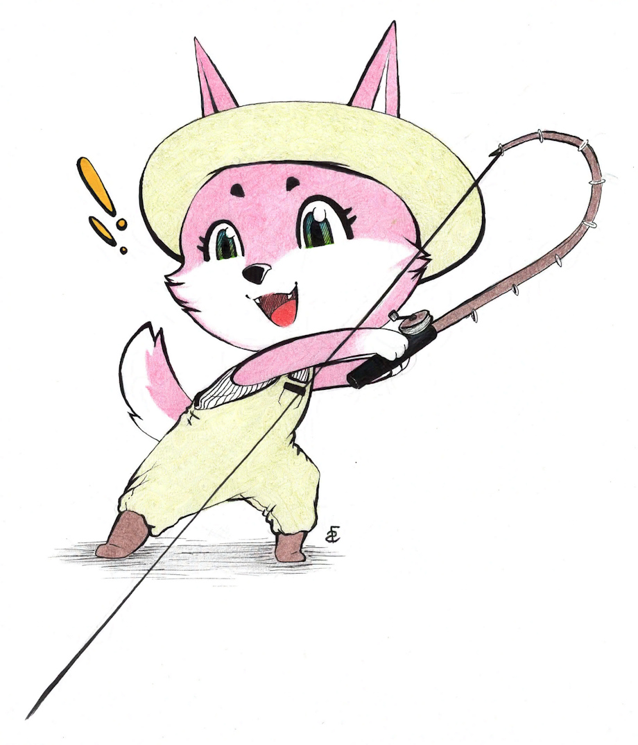 A pink little wolf getting excited for a catch. its a simple one that I had on the backburner incase my current project wasn't finished in time. This was inspired by WEBFISHING, which I have been playing quite a bit lately.