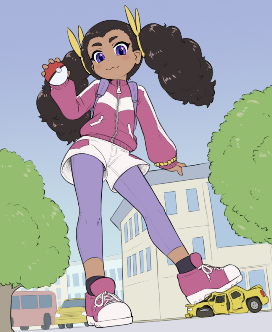 Hahahah I see how this happened given the source imagery! I like how you used the pastel colors and whatnot. That is a fairly cute trainer design, I like how you drew her outfit and the little details on the short/legging seams and whatnot. Adorable sneaker proportions and crunch too!