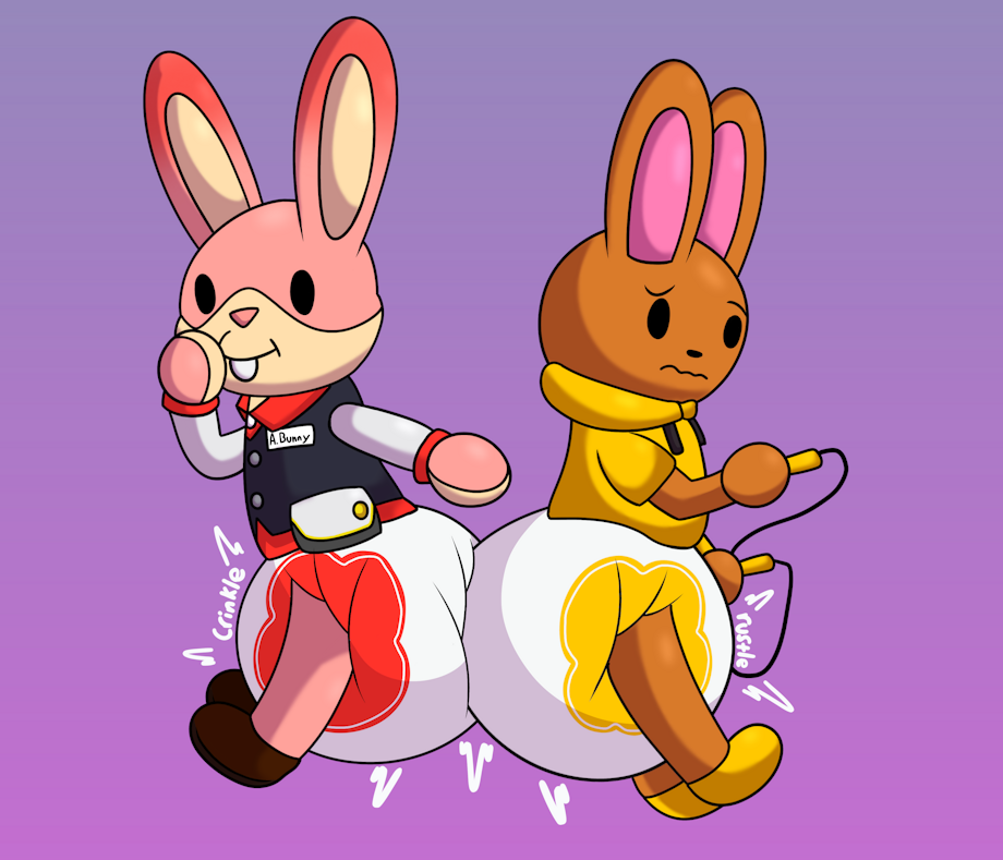 Jump rope bunny (right)- From Jump rope challenge. Fun fact, it was also Arcade bunny shows up as a costume.