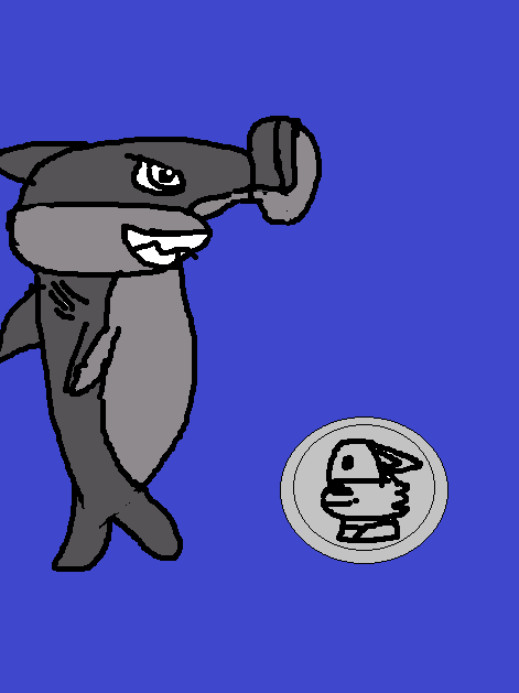 Looks like poor Jeremy has crossed paths with the Hammerhead Shark from Nick Arcade, and has been hammered into a quarter.