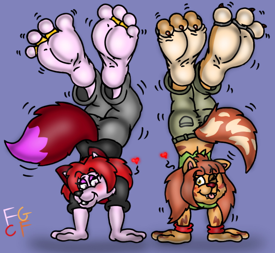 Featuing both his Galactic Gals Cianna n Attera Both doin some hand stands and giving a good view of their tootsies together heh.