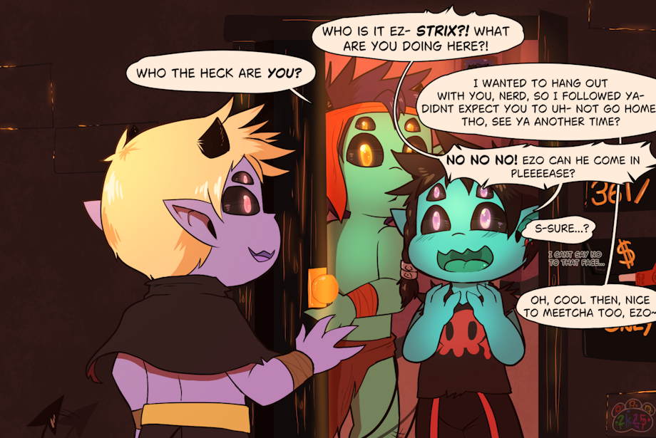 Ezo answers the door in a grouchy manner but he changes his tune a little when he finds Aki knows Strix