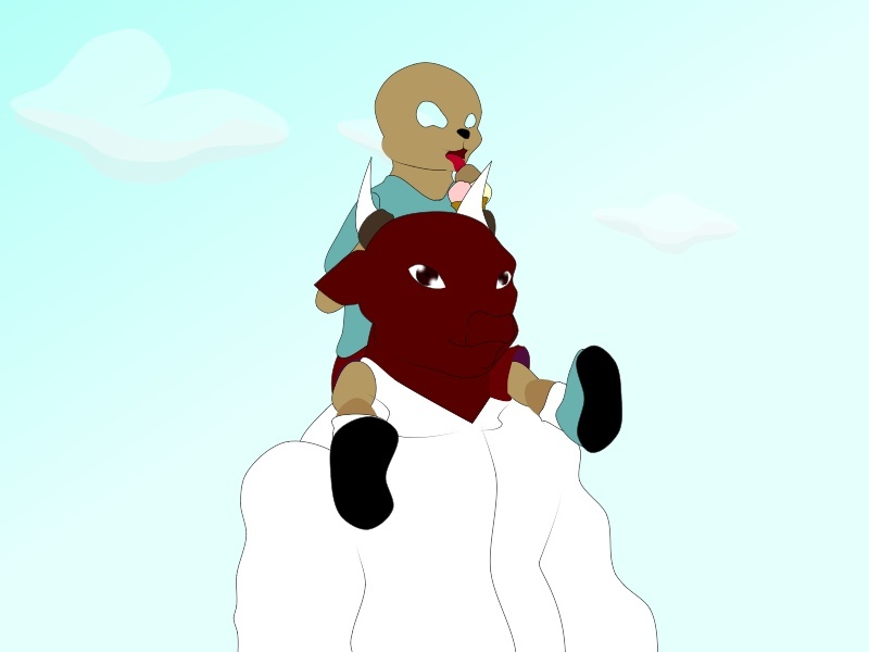 No hay mejor manera de caminar en el parque que montando los hombros de tu papi y comiendote un delicioso helado. Aun trabajo en este, como pueden ver.