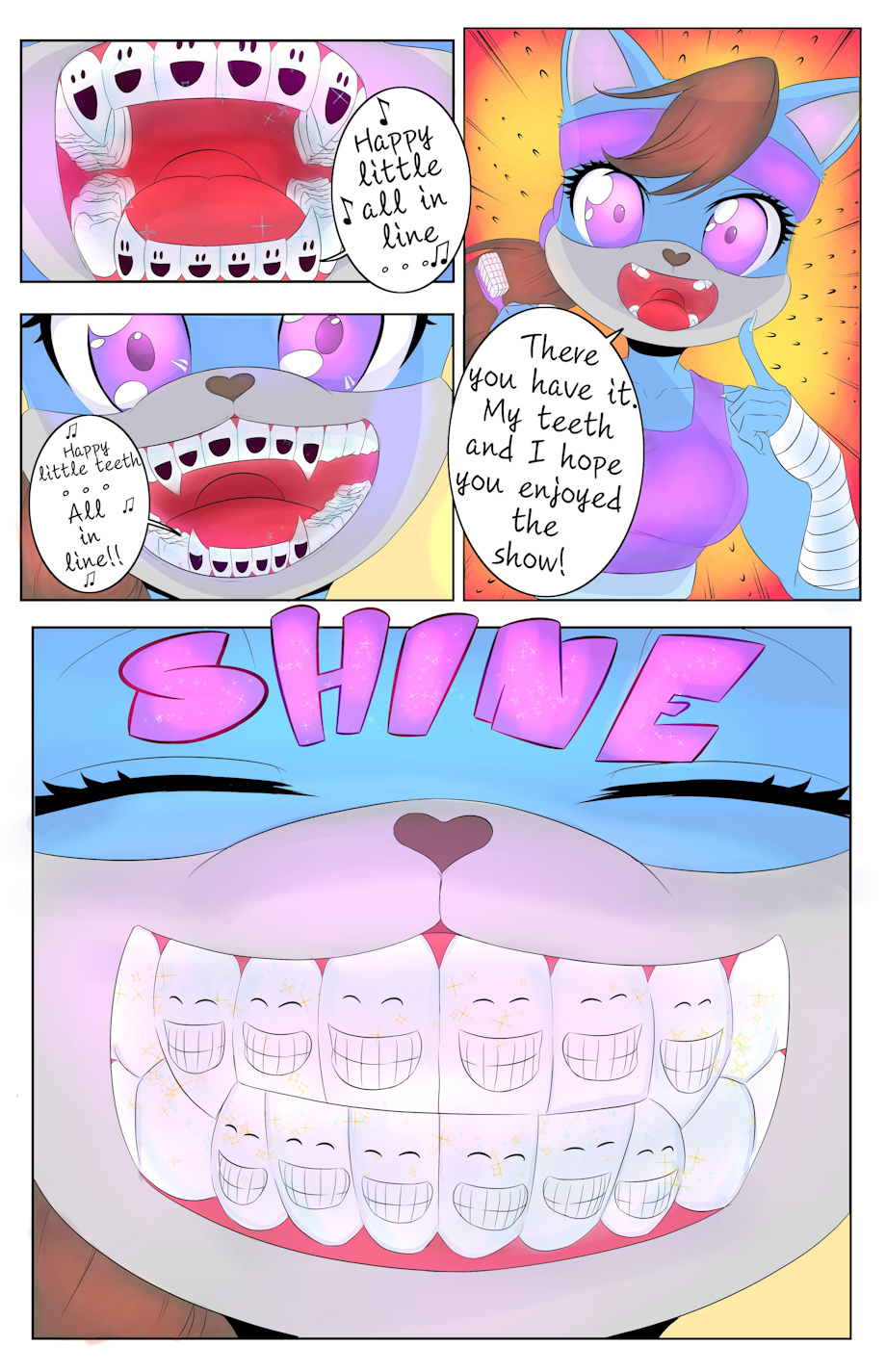 Here's a 4-page comic adaptation of a story where my OC Nancy the Panther's teeth sing praise of a toothbrush which brushes them.