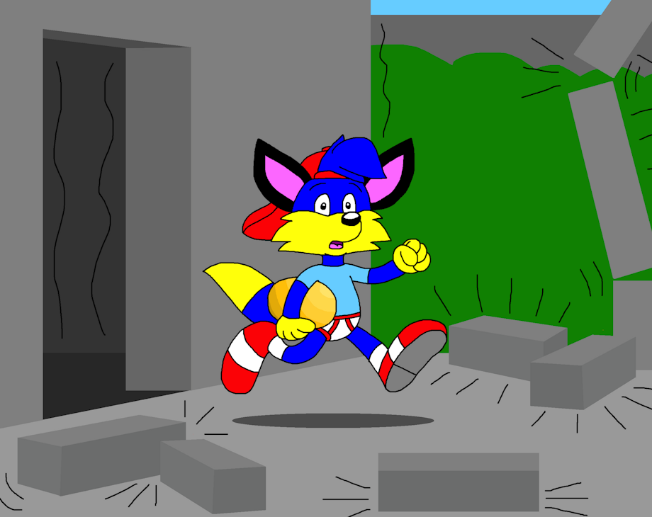 Alex the Fox Grabbing a Golden Egg and Running Down Stairs and in the Door and Go Outside the Door in the Breaking Castle in the Forest, and it Just In Time.