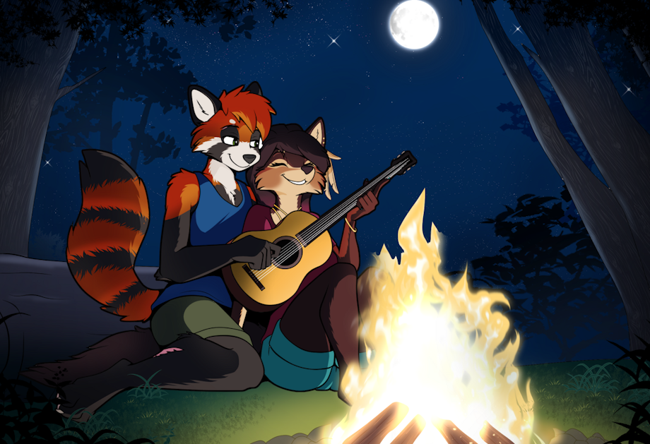 A commission for Akio of his characters Akio and Diya sharing a magic moment beneath the stars ^^