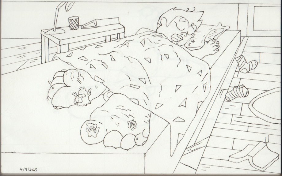 Darryl tends to, in the middle of the night, grumbly wipe his eyes and stumble out of bed to fetch a cup of milk when he's feeling thirsty. Of course he is too sleepy to notice all the small specters that happen to be in the way of his incoming steps as stumbles to and from the kitchen. There was a ghost who thought it a good idea to haunt the boy one night, but on seeing such chunky soft young feet like his, the ghoul couldn't help but be too infatuated with them. The ghoul visits frequently to make out with his sleepy feet.