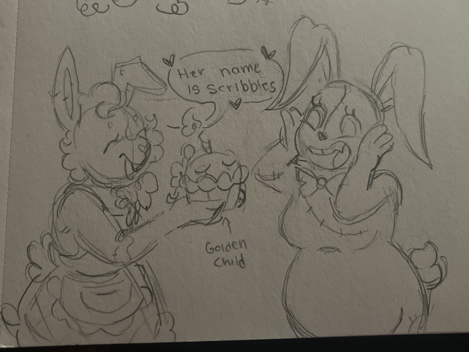 So, ClownCar drew a scenario where StitchVanny is introducing Scribbles to my version of Vanny. StitchVanny is the one on the left, and my version is on the right.