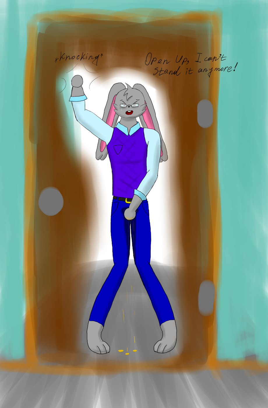 The poor little rabbit boy is not allowed to go to the toilet by bullies.